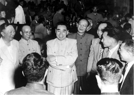 1956年,在北京召开的中国科学技术发展规划大会上,周恩来总理接见科学家。右四为余瑞璜